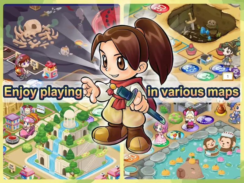 2. 丰富的卡片道具,可以控制步数、夺取土地或现金、盖屋拆屋、迎神送神、陷害对手.... 让游戏千变万化!