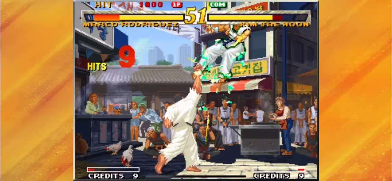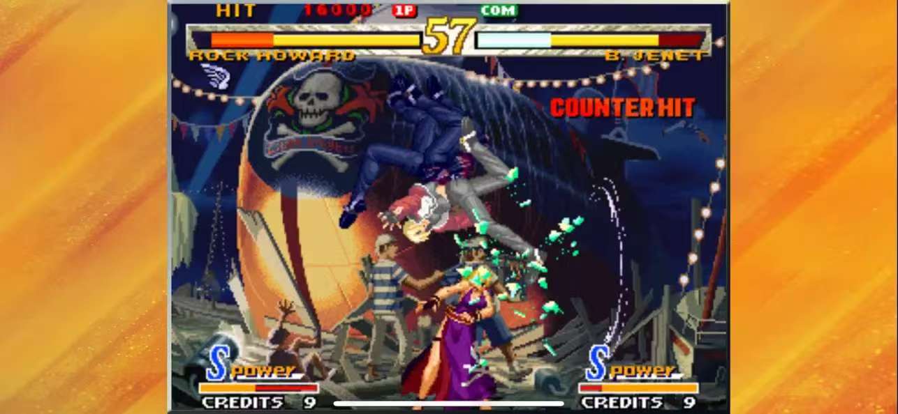 除了4键和6键布局外,“SP”和“FM”特殊按钮允许用户只需按下一个按钮即可激活特殊技能和绝技。此外,这款忠实移植的《GAROU: MARK OF THE WOLVES》还设有“练习”模式,你可以在其中训练所有的招式和最佳连招;“生存”模式,你将与所有游戏角色战斗,直到你的生命条耗尽归零。
