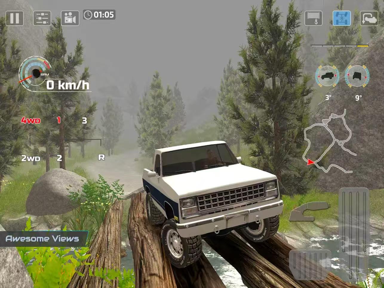 图形质量、4x4越野特性和悬挂在真正越野体验中得到了改进。您可以使用不同的技术,例如将车辆置于一档以应对陡坡或障碍物,如果其中一个车轮失去牵引力,请启用差速锁,如果您的车辆被困,请使用绞盘。在OffRoad Drive Pro中,您可以在自由漫游模式的设置菜单中启用FOG并增加或减少其强度。