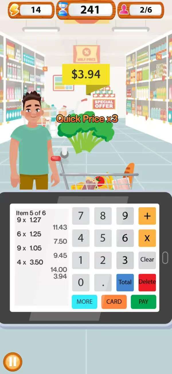 使用这个游戏进行你的第一份工作培训,或者只是锻炼你的大脑,让你在数学和时间管理上变得迅速。计算找零并赚取那笔杂货钱。看看你是否能完成超级市场收银员的所有关卡。无论是孩子还是成人都会发现这个收银机游戏有趣且具有挑战性。这是一个舒适和放松的游戏和收银机模拟器。