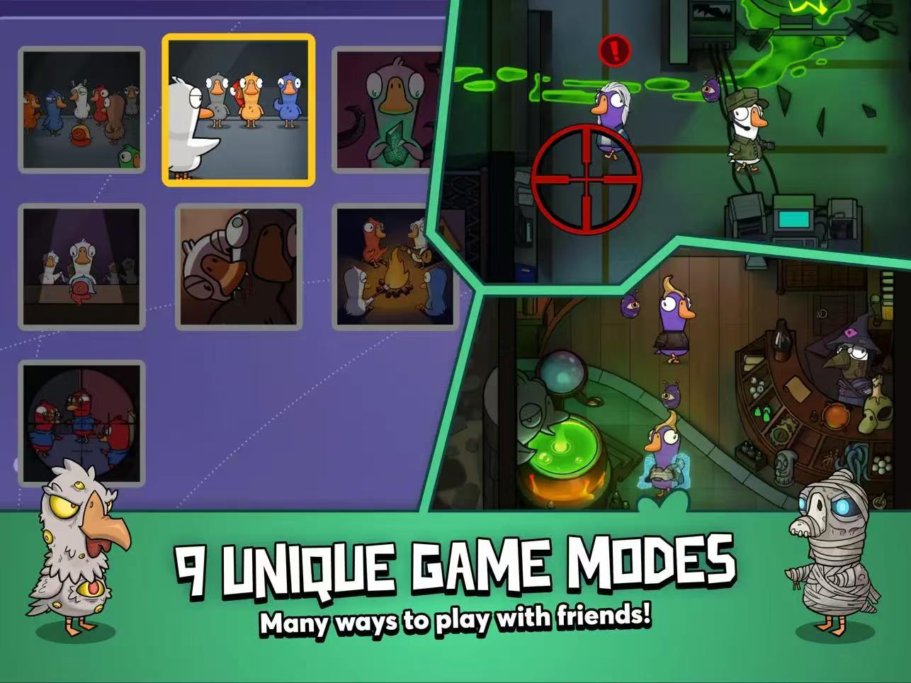 Goose Goose Duck 是一款社交推理游戏,鹅需要完成任务,而鸭子则会进行破坏并试图消灭鹅。您可以扮演一只鹅以求生存,或者扮演一只鸭子制造混乱。游戏支持近距离语音聊天、独特的角色、自定义的外观装扮和多样化的环境供您探索。