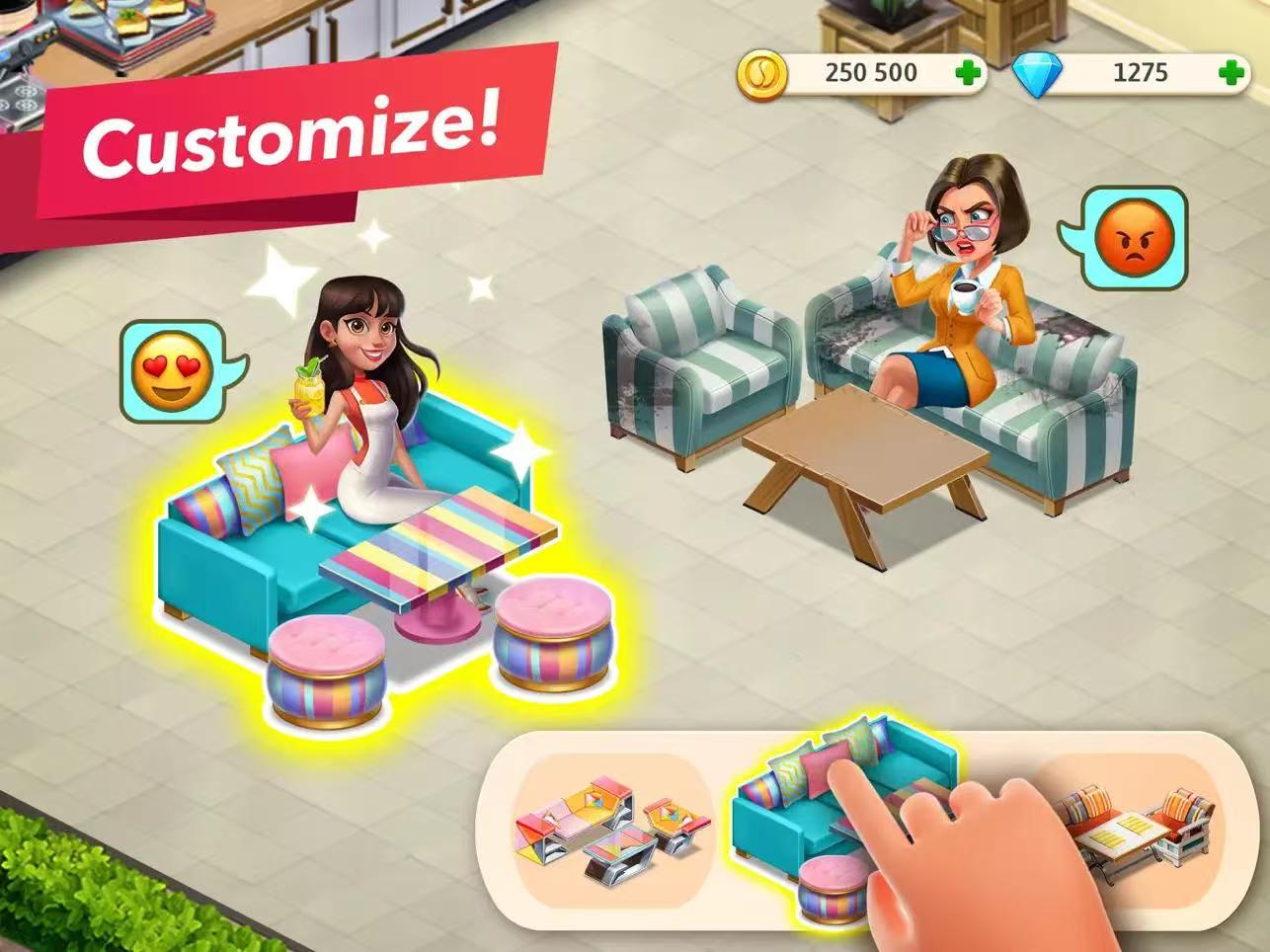 • 在这款烹饪游戏中,您可以选择多种装饰风格,根据自己的喜好摆放家具,并通过彰显个性的元素,打造一个专属于您的咖啡厅。