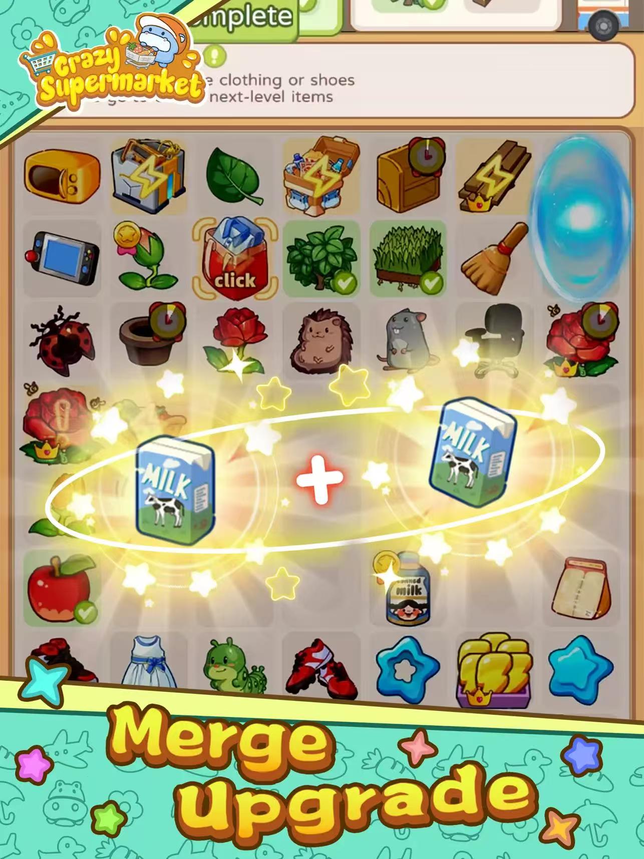 3. 查看合併界面顶部订单栏,合并他们需求的物品以完成顾客订单,赚取金币奖励。