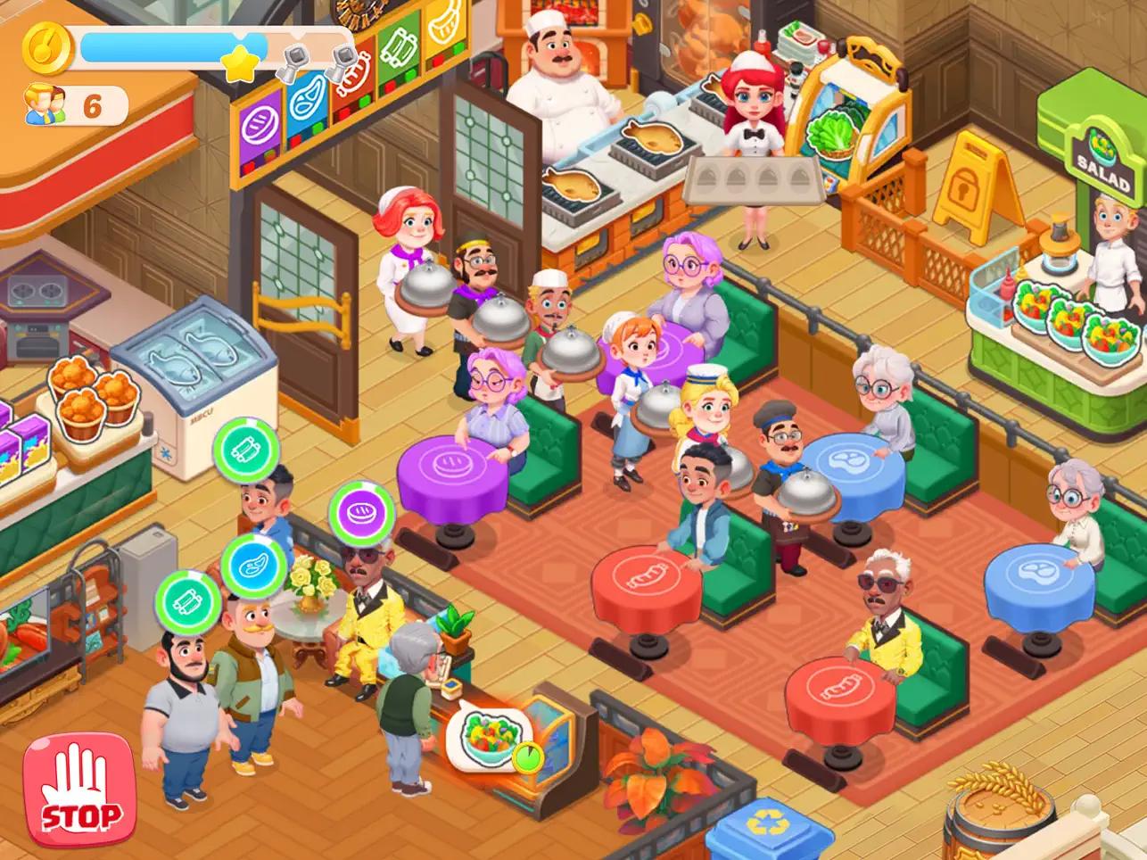 不同于普通的烹饪游戏,这个游戏模拟了从烹饪到上菜的整个过程,完全模拟了餐厅管理的游戏玩法,让你能够沉浸式地参与烹饪的每一个方面。从顾客进入餐厅的那一刻起,餐厅的运营就开始了。给顾客安排桌子,顾客点餐,给顾客上零食,厨师亲自为顾客烹饪等,一系列的过程将在游戏中呈现。你还可以升级服务员和厨师,使他们更高效、更快;升级菜肴,使食物更美味;升级餐厅设备,以容纳更多的顾客。不要错过每一个细节,从这里开始,创建完美的餐厅。