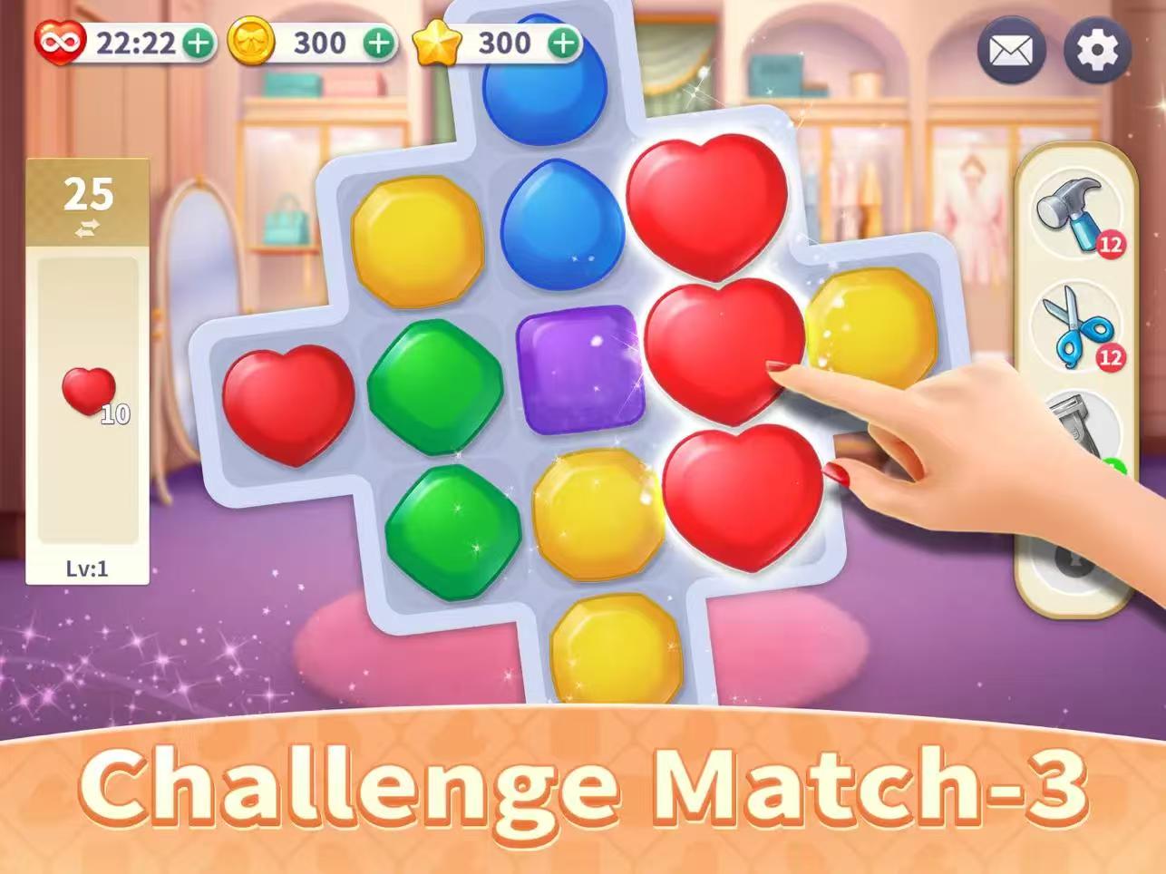 随着你在匹配3冒险中不断前进,解锁更多时尚的装扮,并帮助那些可怜的女孩!