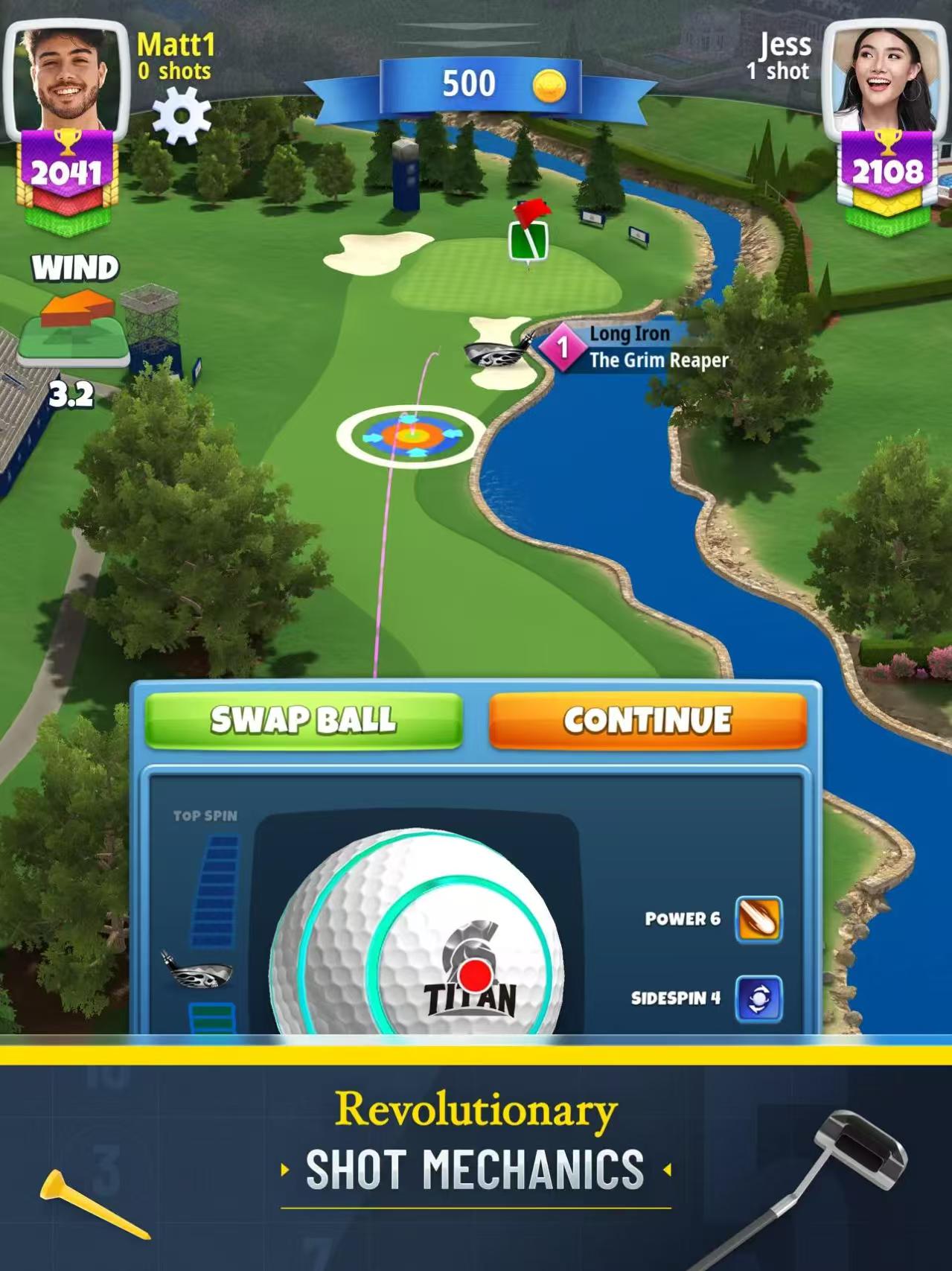 • 将球放在发球台上,瞄准,然后观看您的击球在美丽的3D高尔夫球场上飞驰