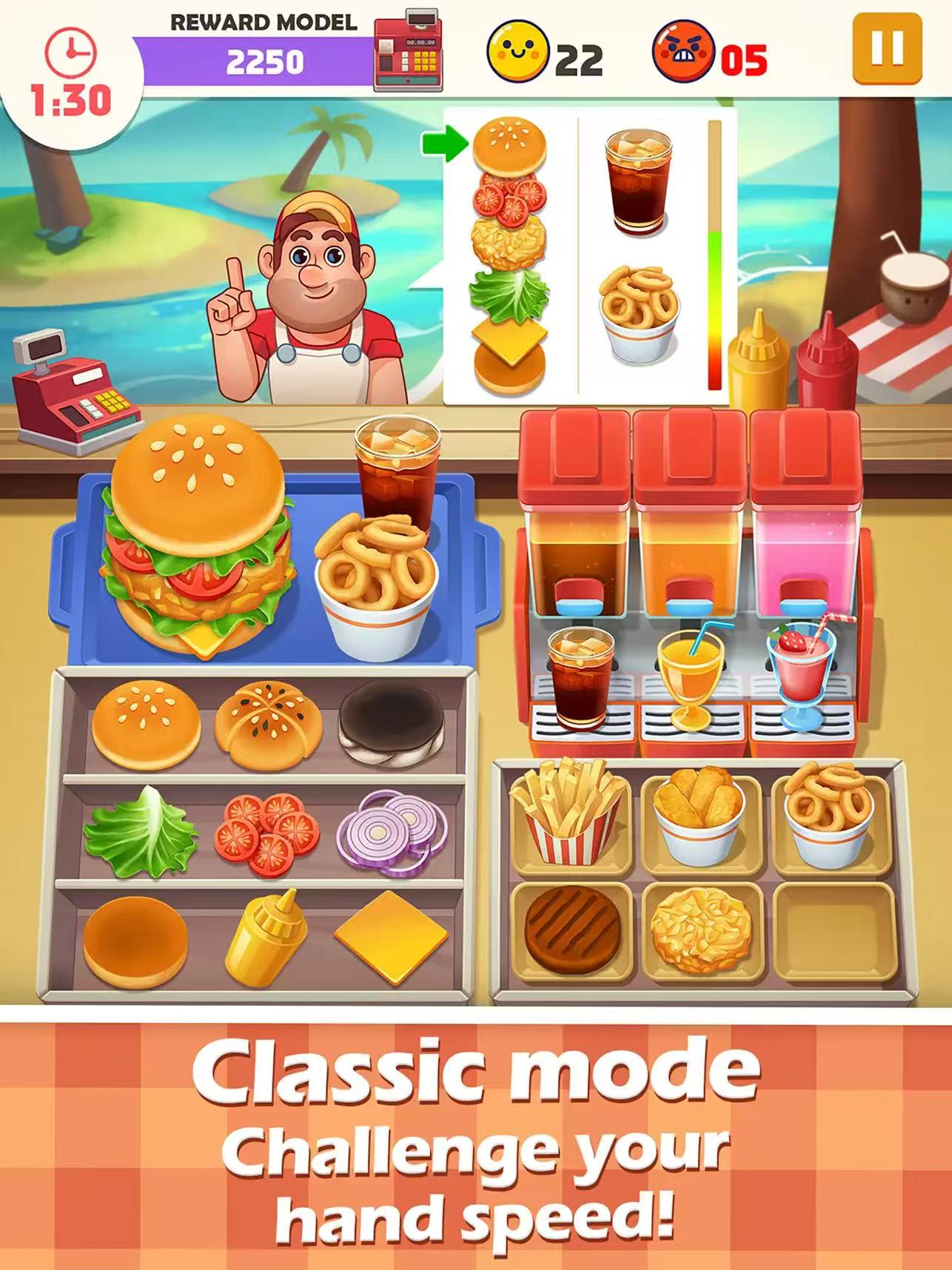 在《烹饪大厨:汉堡餐厅》里,你需要经营多家自己的美式快餐店,快速烹制顾客点的餐单,学习并推出各种各样的新品,满足顾客味蕾,包括汉堡、早餐、小吃、套餐四大类别,使用的厨具也是丰富多样。在制作时还要时刻注意顾客的等待耐心,并不断地补充原材料。随着顾客的增多,你可能会需要自动收款机、高级进货电话、高级华夫饼机等道具升级来满足业务需要。 【游戏特色】