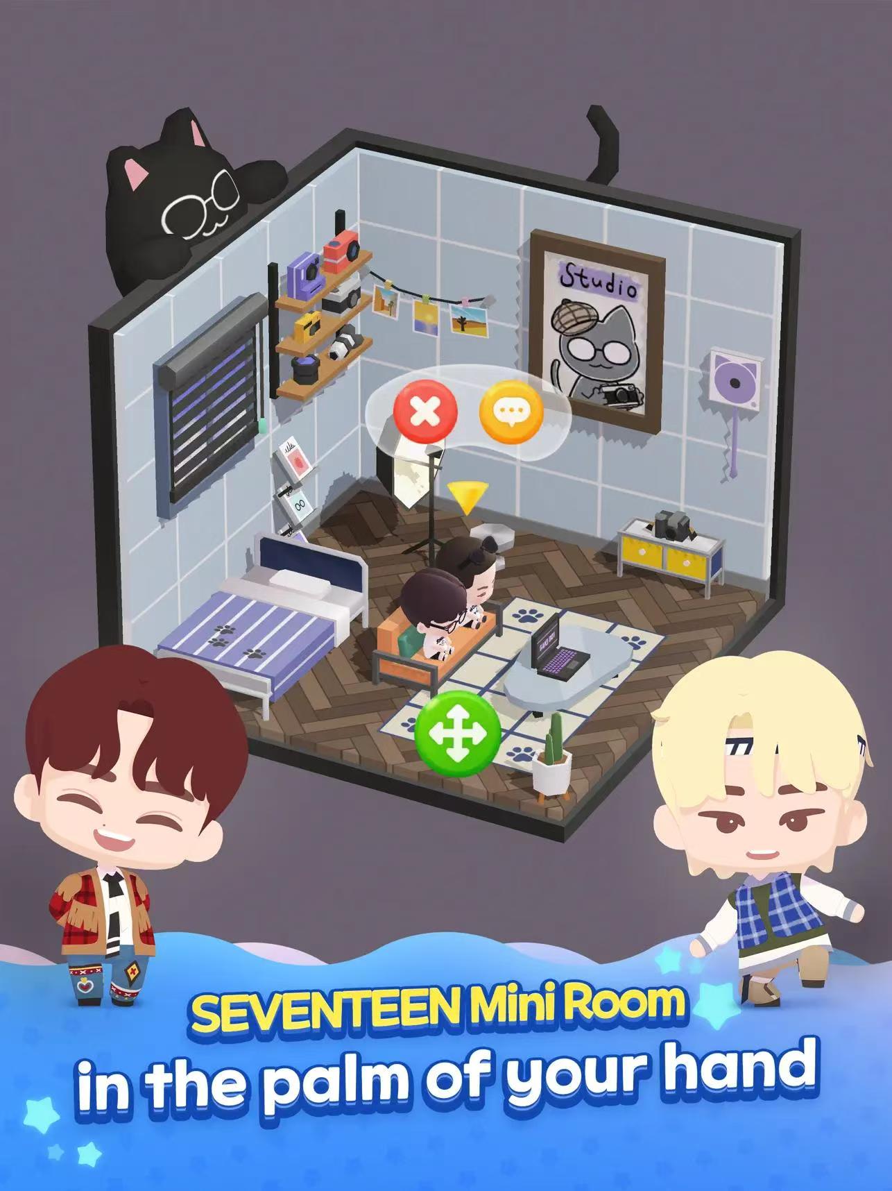 为SEVENTEEN成员布置房间。要不要把小屋装饰得像偶像演唱会一样呢?自由摆放装饰,打造出SEVENTEEN成员的「我的小屋」还能通过互动动画看到成员们可爱的反应。