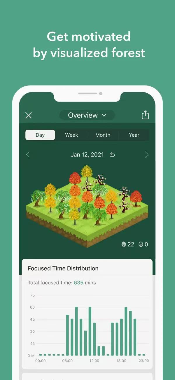 不论你是在图书馆读书或是在办公室上班,每当你希望有一段专心工作或学习的时间,你可以在 Forest 中种下一颗种子。在接下来的时间内,这颗种子将会慢慢地成长为一棵大树。若是你禁不起诱惑,在这段时间内离开这个 app,你充满生机、可爱的小树将会枯萎而死。每一天,你都会有一片森林种满了你今天所有茁壮的大树,每一棵树都代表了你曾经努力的时光。伴随着画面中生长的小树,成就感以及责任感将会帮助你暂时离开手机,全心投入到手边的工作,建立高效率与专注的生活习惯。 #治疗拖延症 #提升时间效率 #遇见心流 #戒除手机成瘾