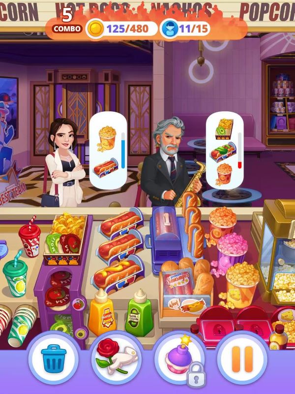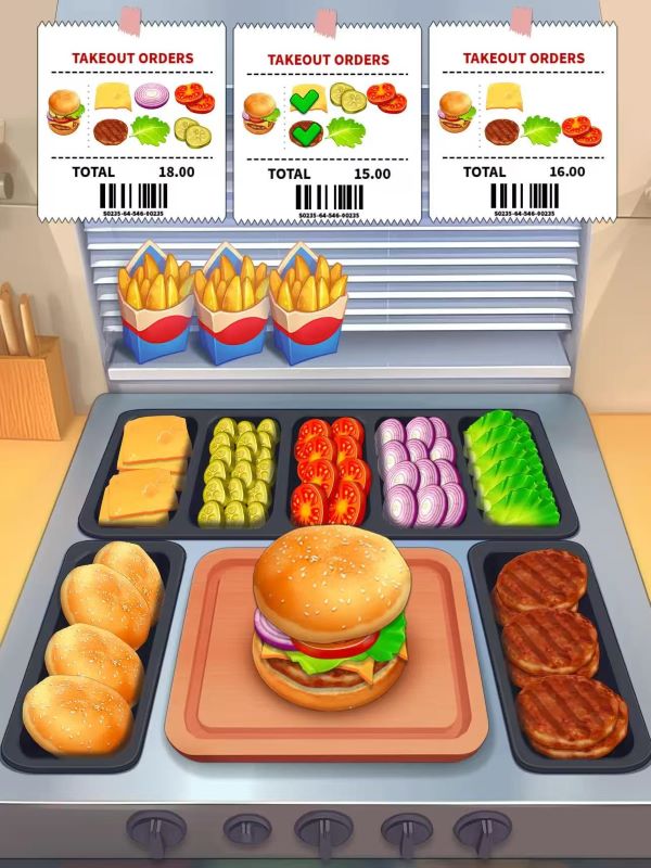 准备美味的菜肴,完成顾客订单,并调整您的厨房设置。节省您的硬币,明智地花费它们,并计划升级以轻松应对挑战。