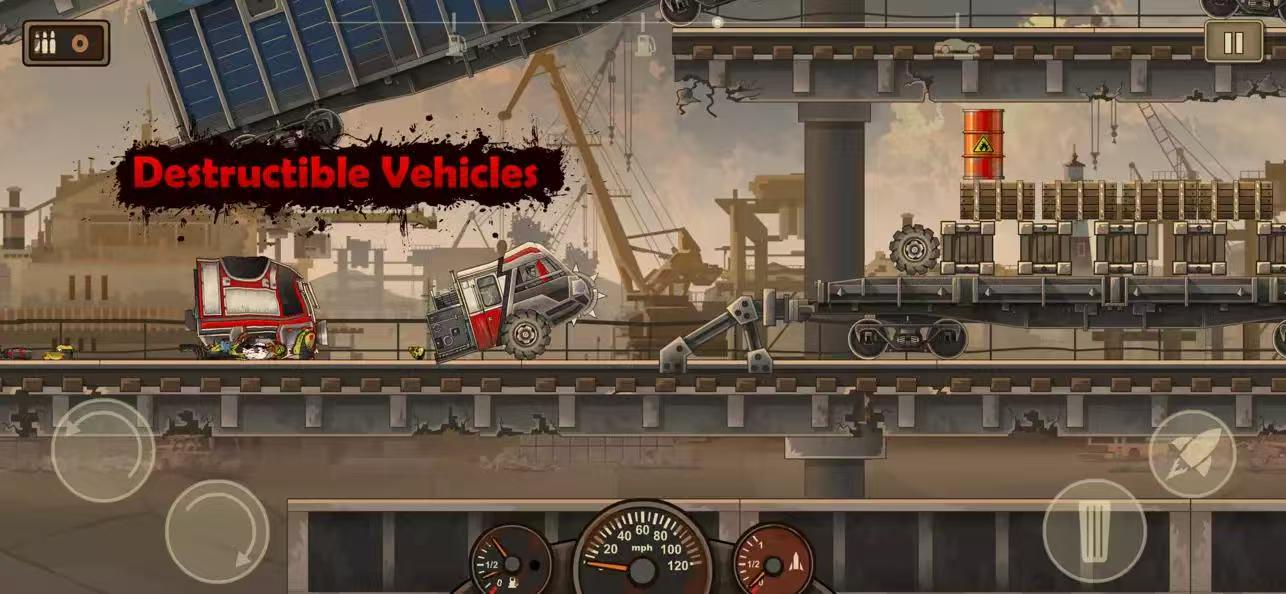 驾驶你的小车穿过重重僵尸的阻拦,在这末日的世界中挑战 Earn to Die 的最高分数!