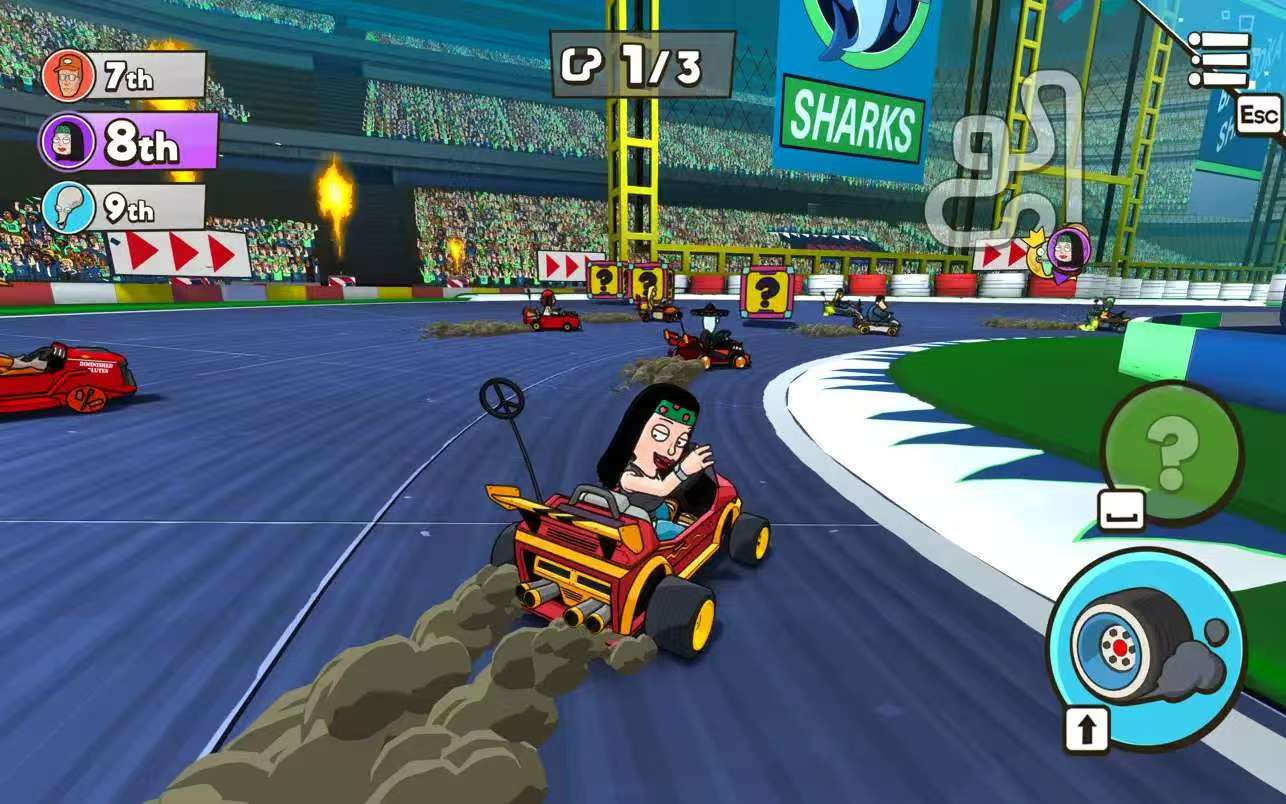 自己或和朋友一起跳跃到最终极的卡丁车赛车游戏吧!这里有许多第 20 台著名动画节目最广受喜爱的角色,包括:《美国老爹》、《盖酷家庭》、《一家之主》和《外星也难民》!前往著名的剧中地点和更多惊喜地点,追求卡丁车冠军吧!