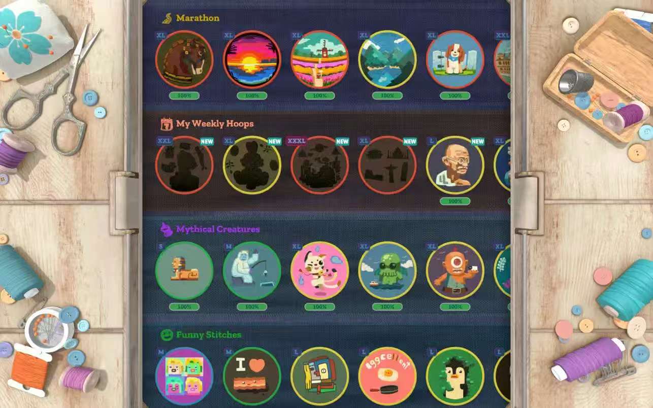 Stitch. 提供了范围广泛的可玩内容和数千个从简单到超难的关卡。请挑选偏好的刺绣圈图、尺寸和类别,并一路破关升级,创造出刺绣大作吧。
