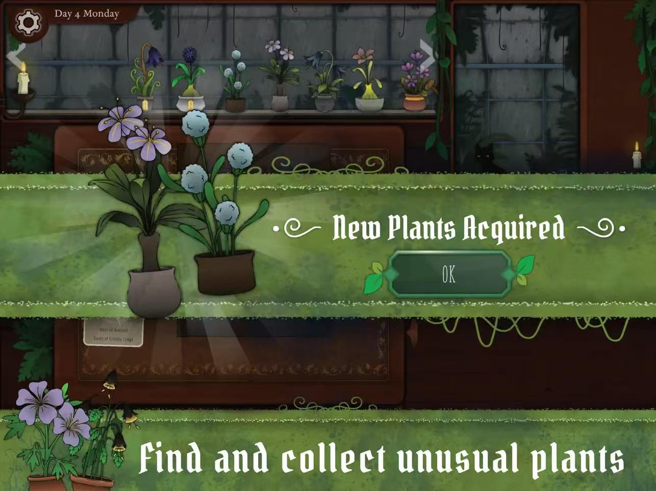 探索店外的土地,尋找新的植物,但要小心!幽暗的森林與湖泊對一個普通草藥師來說并不總是友善。你可能会发现意想不到的力量——或者彻底迷失心智。根据情境线索决定哪些地方值得探访,哪些地方必须避开!
