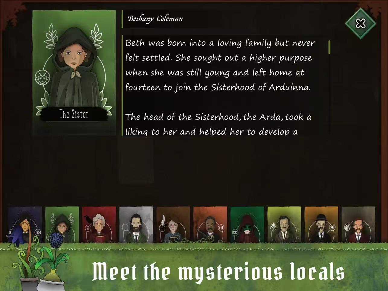 欢迎来到昂德米尔镇。这个古朴小镇四周环绕着沼泽密布的森林与崎岖不平的山脉。你是园艺家,本地植物商店「Strange Horticulture」的老板。随着各色顾客光临你的商店,你迅速被卷入一起延续数百年的神秘学事件中。
