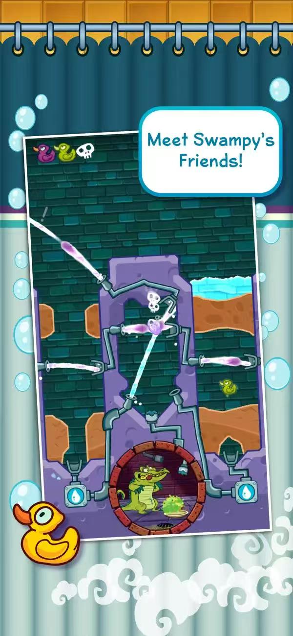 • 包含超过 100 个关卡及挑战。玩家将和小顽皮、爱丽、大顽固及神秘鸭,一同探索崭新的鳄鱼世界!