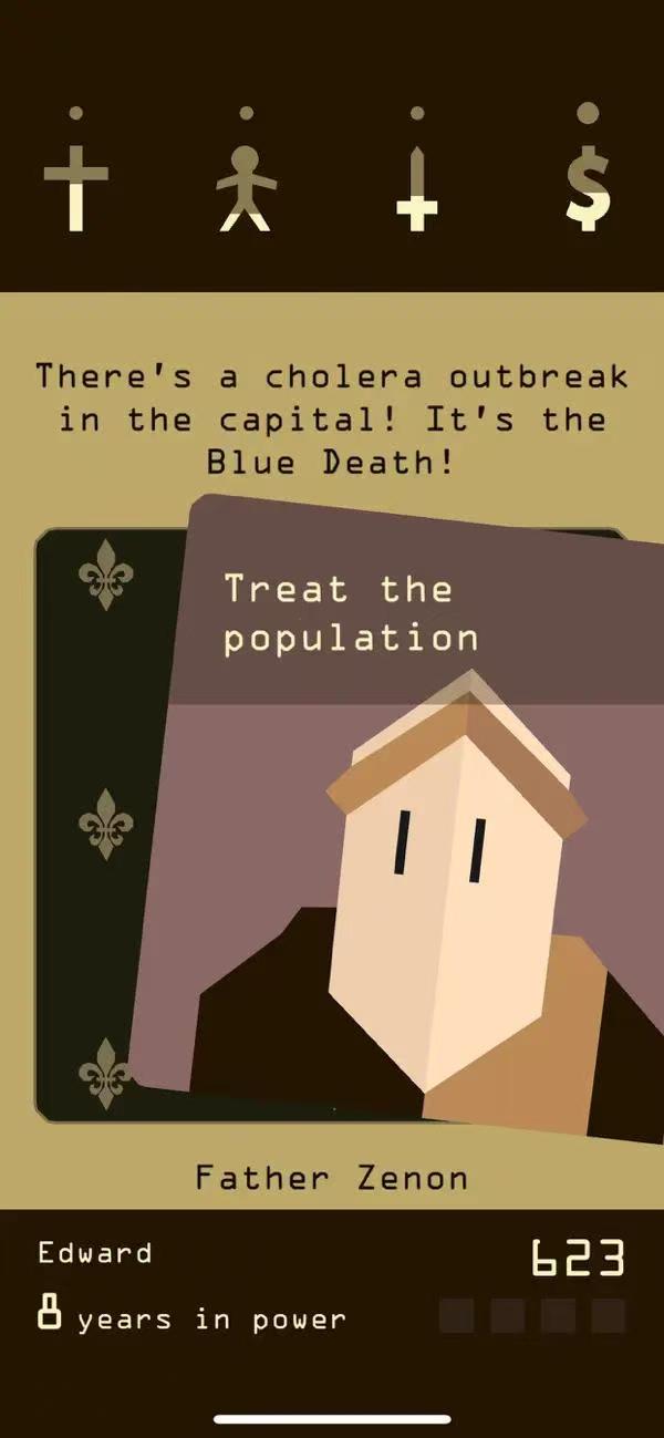 飘忽不定的王国命运:每年发生的随机事件会根据你的选择对宗教、民生、军事和财政四个方面造成影响。谨小慎微的决策和富有远见的规划是统治长青的奥秘所在,然而,难以预料的突然事件或者可怜的霉运都可能轻易动摇你看似牢不可破的权力。